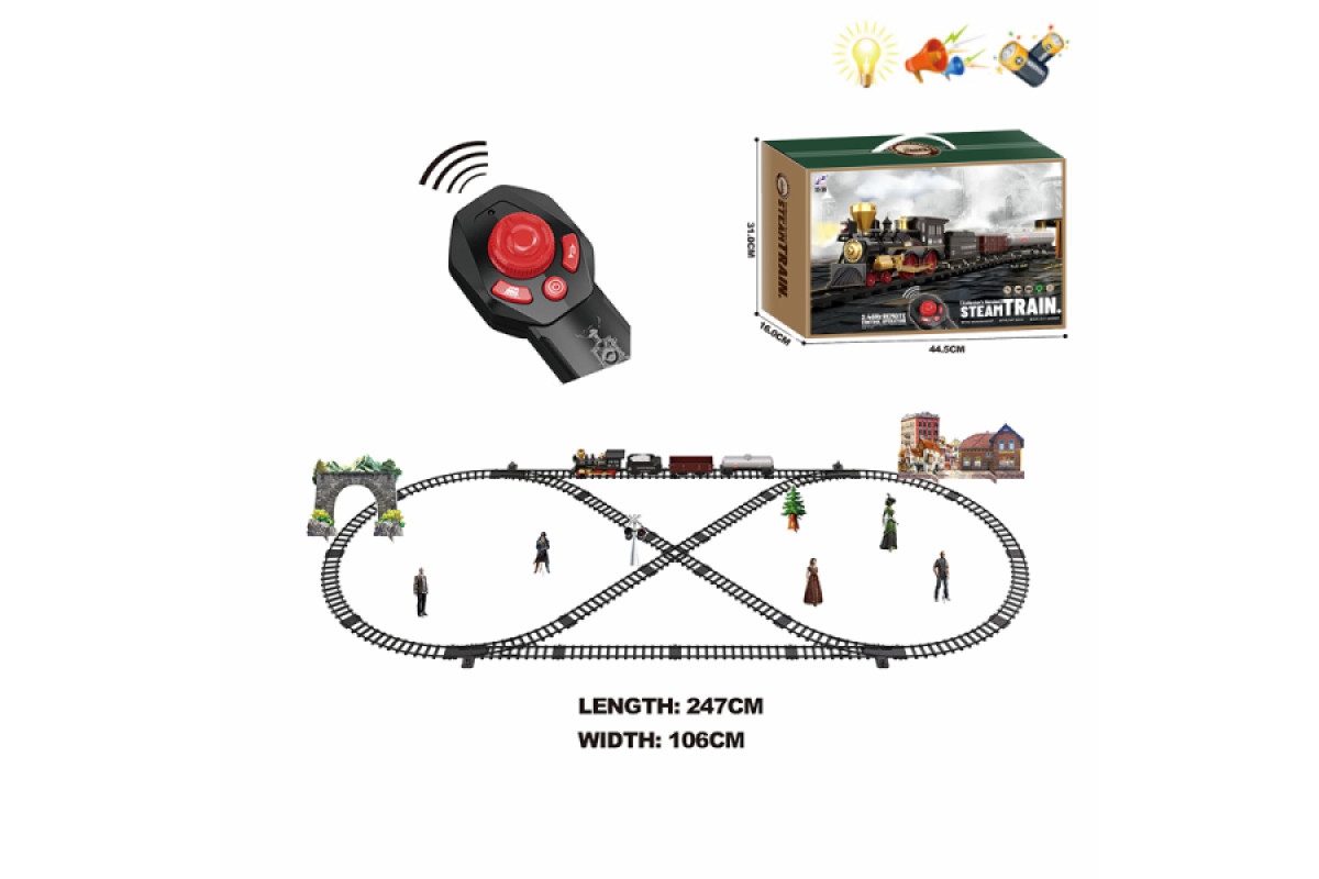 Поезд порадует Вас и ребенка наличием световых, звуковых и дымовых эффектов. Наслаждайтесь каждым запускам оригинального состава, слушайте реалистичное гудение, подсвечивайте свой путь в темноте и, конечно, наблюдайте за дымом идущем из трубы!