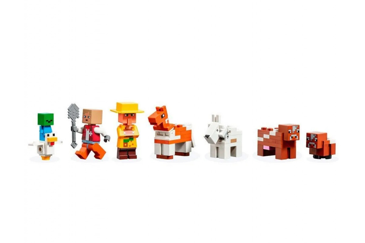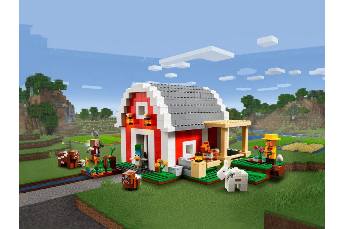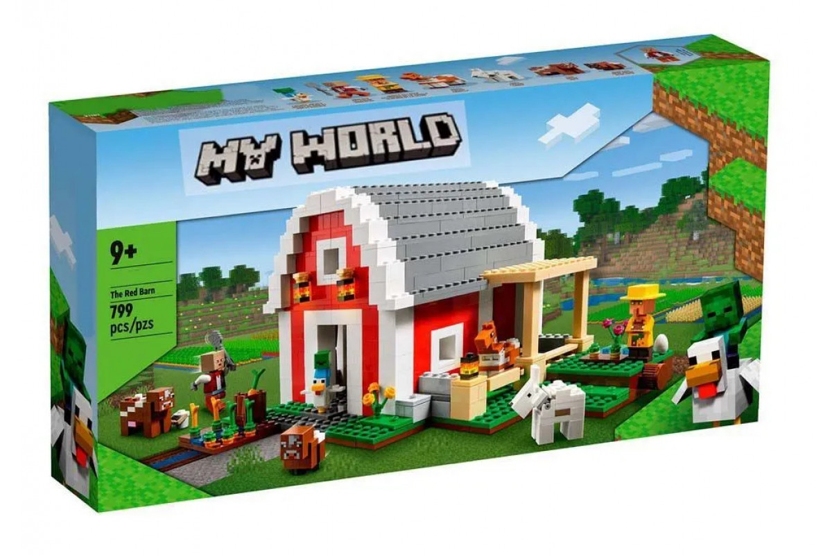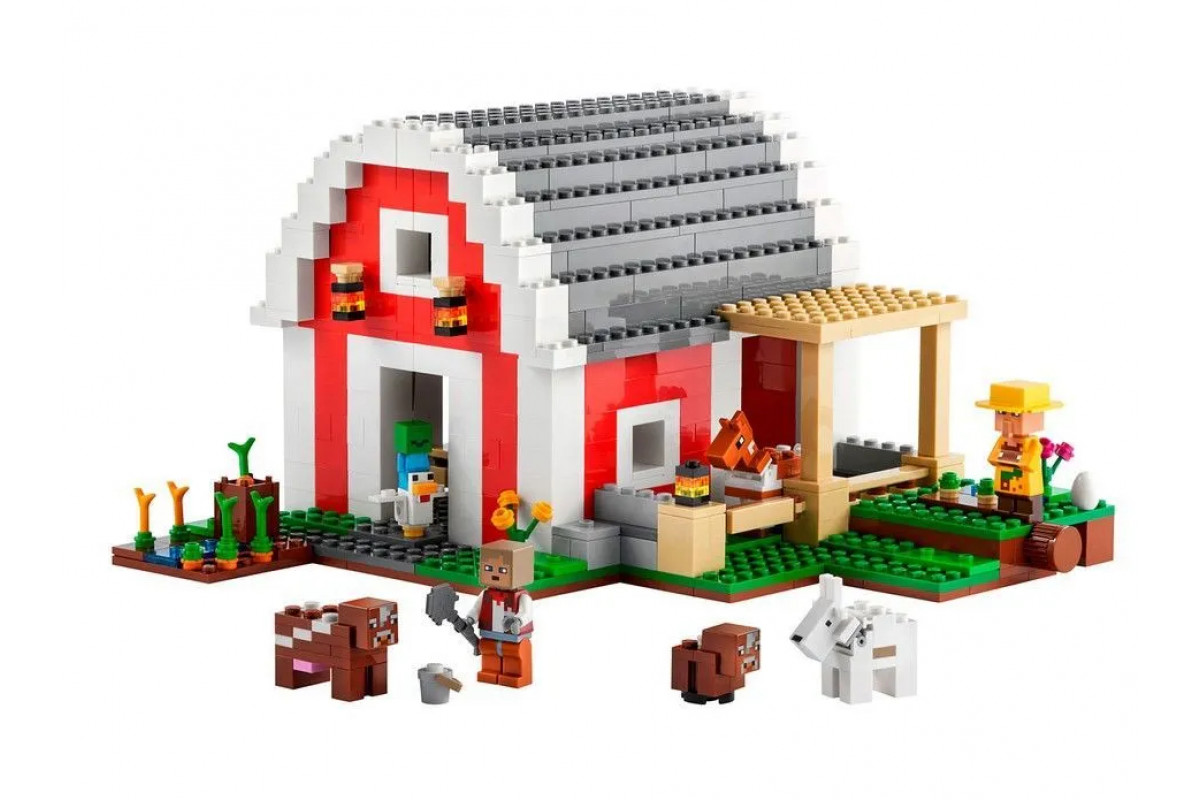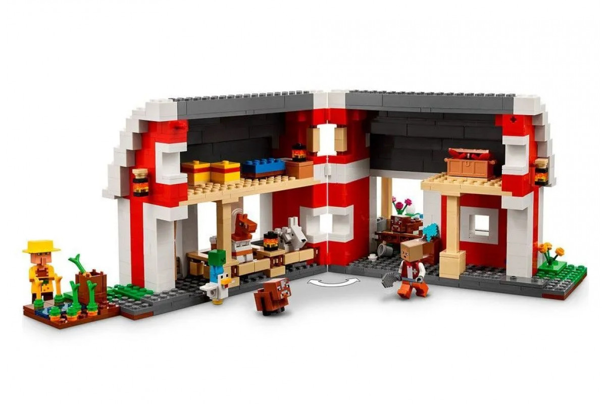 Снаружи можно ухаживать за животными и собирать урожай овощей, а благодаря подвижной конструкции амбара и проработанному интерьеру у вас появятся новые активности. Универсальный подарок для игроков Minecraft. Этот набор Minecraft легко сочетается с другими конструкторами серии, что дарит подарки нам ещё больше простора для творчества. Воплотите в жизнь культовое здание из Minecraft с набором Красный амбар и подарите фанату видеоигр старше 9 лет прекрасный мерч с игрушкой одновременно.Воссоздайте часть фермы из популярной игры аутентичными персонажами и аксессуарами.Внутри вас ждут фигурки знакомых персонажей: хозяина ранчо, жителя джунглей, козы, коровы с телёнком и маленького зомби, оседлавшего курицу.Аутентичный экстерьер и внутреннее убранство дарят бесконечные игровые возможности.Отличная идея подарка фанату Minecraft в возрасте от 9 лет. Играйте внутри и снаружи, любуйтесь готовой композицией и демонстрируйте друзьям - любителям видеоигр.Собранная композиция имеет множество вариантов конфигурации, её размеры: 14 см в высоту, 26 см в длину и 24 см в толщину.Аксессуары для творчества - пшеница, яблоки, лопата, морковь, яйцо, топор, сундук и ведро с молоком.