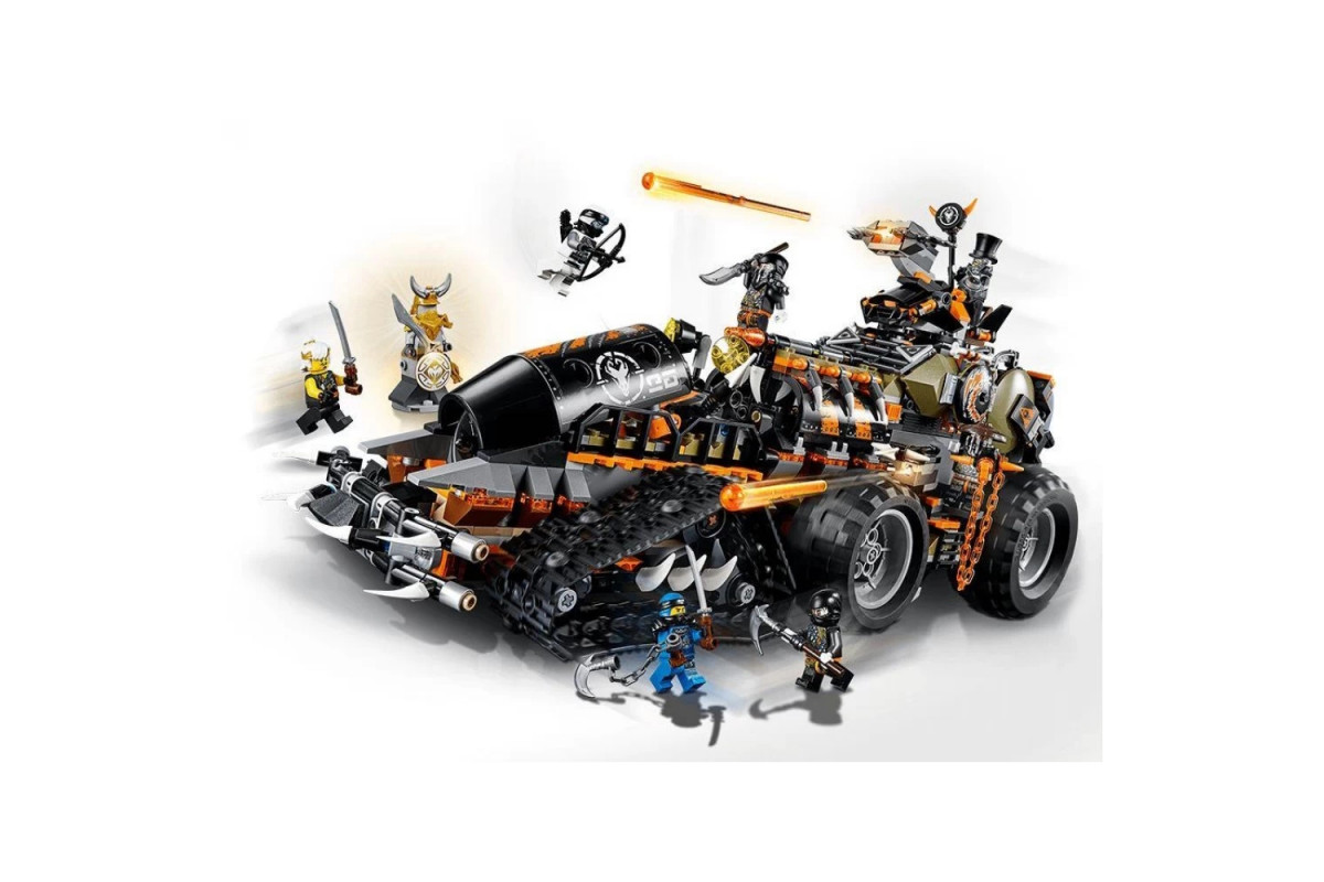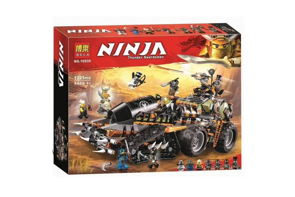 Конструктор (арт. 10939) "Ниндзя - Стремительный странник" Огромная черная боевая машина "Стремительный странник" преследует самураев Ниндзяго. У боевой машины на вооружении - катапульты и ракетницы, отдельные модульные части машины могут отсоединяться. Кабина открывается, скрывая под собой место пилота. В машине также реализован салон, закрытый шипованными бортами. В наборе 7 минифигурок с новым дизайном: молодой мастер Ву, Джей, Зейн, харизматичный Железный Барон в черном цилиндре, воины Череполом, Намордник и Тяжелый Металл с огненным арбалетом. Количество деталей: 1221 шт. Количество человечков: 7 шт. Размер коробки: 50 х 39,5 х 9 см Рекомендуемый возраст: от 6 лет.