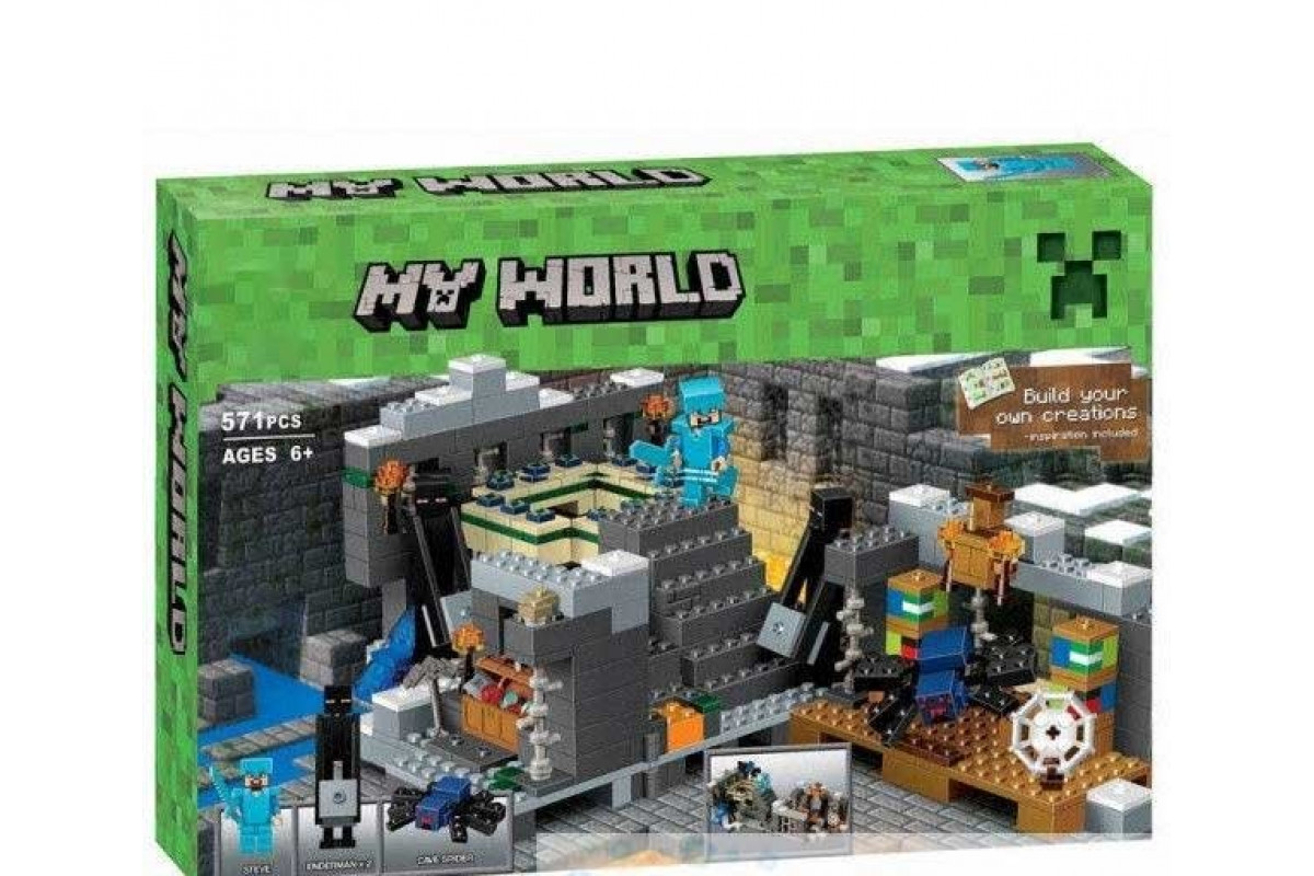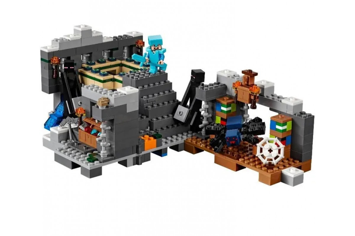Конструктор "Minecraft" (10470) Портал в Край 571 деталь На этот раз Стив находит сооружение именуемое Око Края. Эта постройка представляет собой портал, помогающий путешествовать по миру Minecraft. Благодаря инструкции Вы соберете этот прекрасный конструктор. Построив стенки серого цвета на холодном фундаменте, повесив факелы для освещения и заполнив пол водой, можно приступать к увлекательнейшей игре. Собрав весь набор воедино, можно обнаружить, что постройка разделена на три условные части. Над лавовым источником расположился портал в другое измерение. На против хранилище, окруженное стальными клетками. Тут можно обнаружить заполненные сундуки с ресурсами, инструментарий и сокровищницу. По центру библиотека которая хранит в себе книги и свитки. Так-же странники двигающие элементы и лестницы со скрытыми проемами. На охране стоит опасный паук, который стреляет ядовитой паутиной. Но вооружившись мечом и одев на себя броню со шлемом, Стив сумеет одолеть врага. Особенностью является многогранность конструктора, благодаря ему можно собрать множество построек. В комплекте Вы найдете: Минифгрку Стива, 2 странника Края и паука Библиотеку оснащенную полками для книг, алтарь и портал Края Шлем, броню,меч и кирку главного героя, ящики с алмазами и красными камнями, глаза Края и изумрудную руду